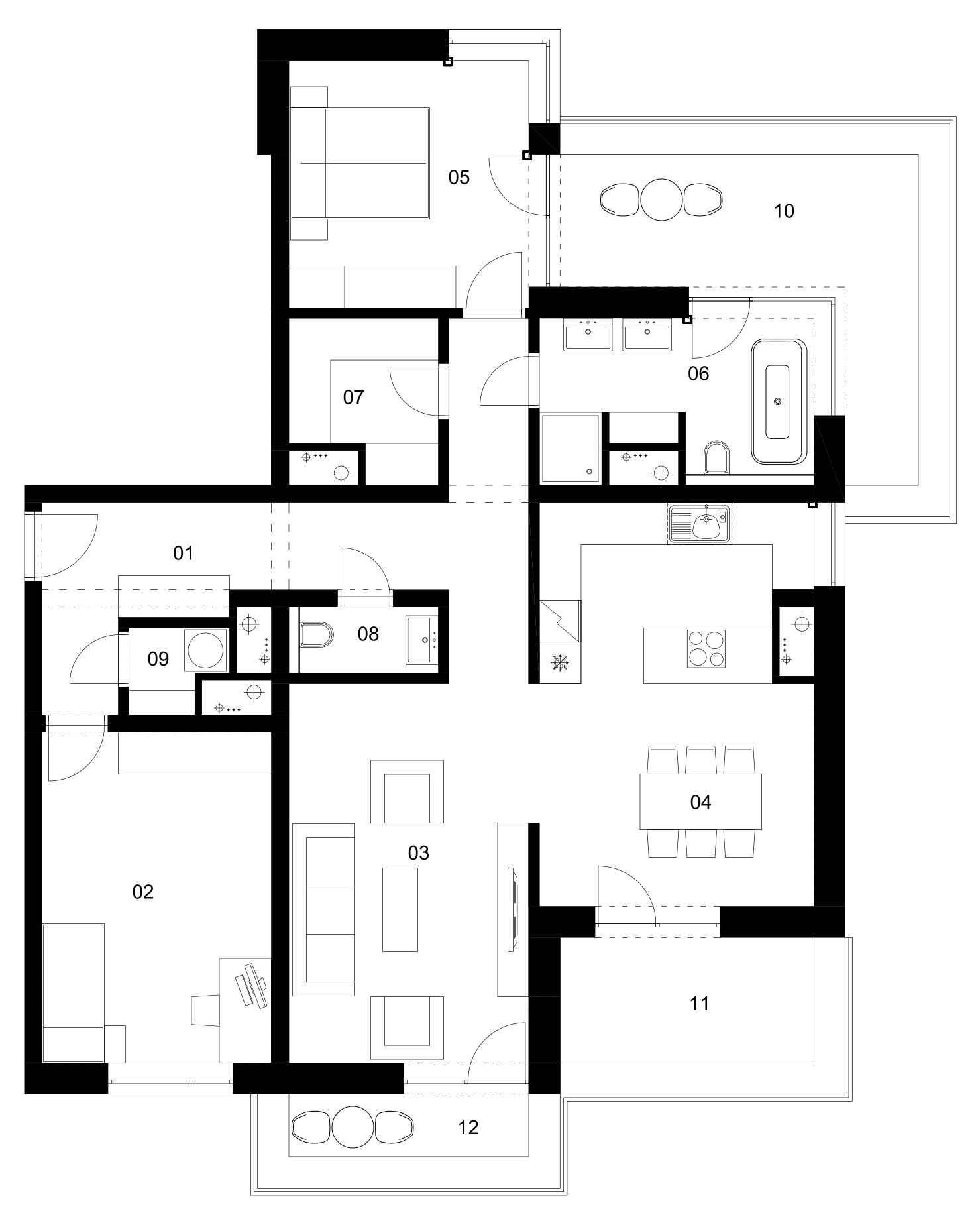 Obytné miestnosti vetrané priamo oknami, kúpeľne a WC s núteným odvetraním. Príprava na klimatizačné jednotky (klimatizačné rozvody).